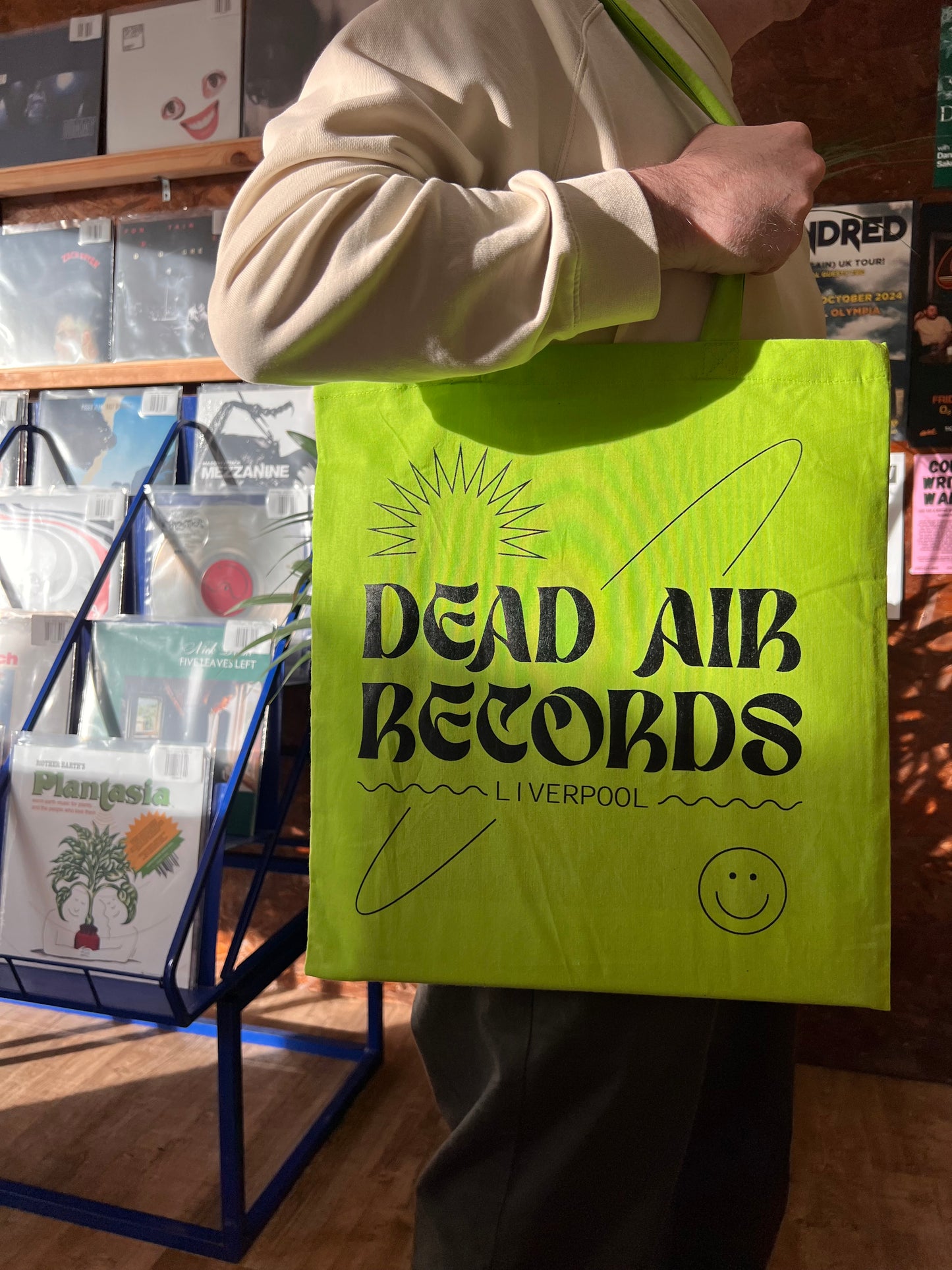 Don’t miss out on this limited edition of Dead Air Records tote bags. Screen printed locally in Liverpool by Crooked Neck Print 🦒 This limited edition run of black ink on Dead Air green and white on black has been printed by hand on heavyweight 100% cotton totes.